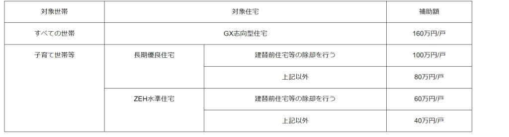 ZEH水準の住宅や長期優良住宅、ZEH基準の水準を大きく上回る性能を有する省エネ住宅(GX志向型住宅)の新築について支援