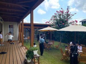 出来上がったピザは、HAGUMIガーデンでお召し上がりいただきました。
