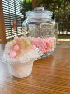 お好きなフルーツシロップを選んでもらい、カラフルなおいりをトッピング♪
