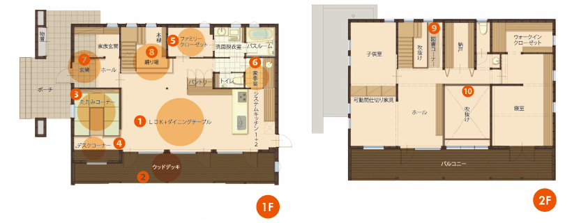 帰宅したら荷物をしまってそのままバスルームへ直行できるファミリークローゼットや家事ラク動線を実現した間取りも見どころです!
