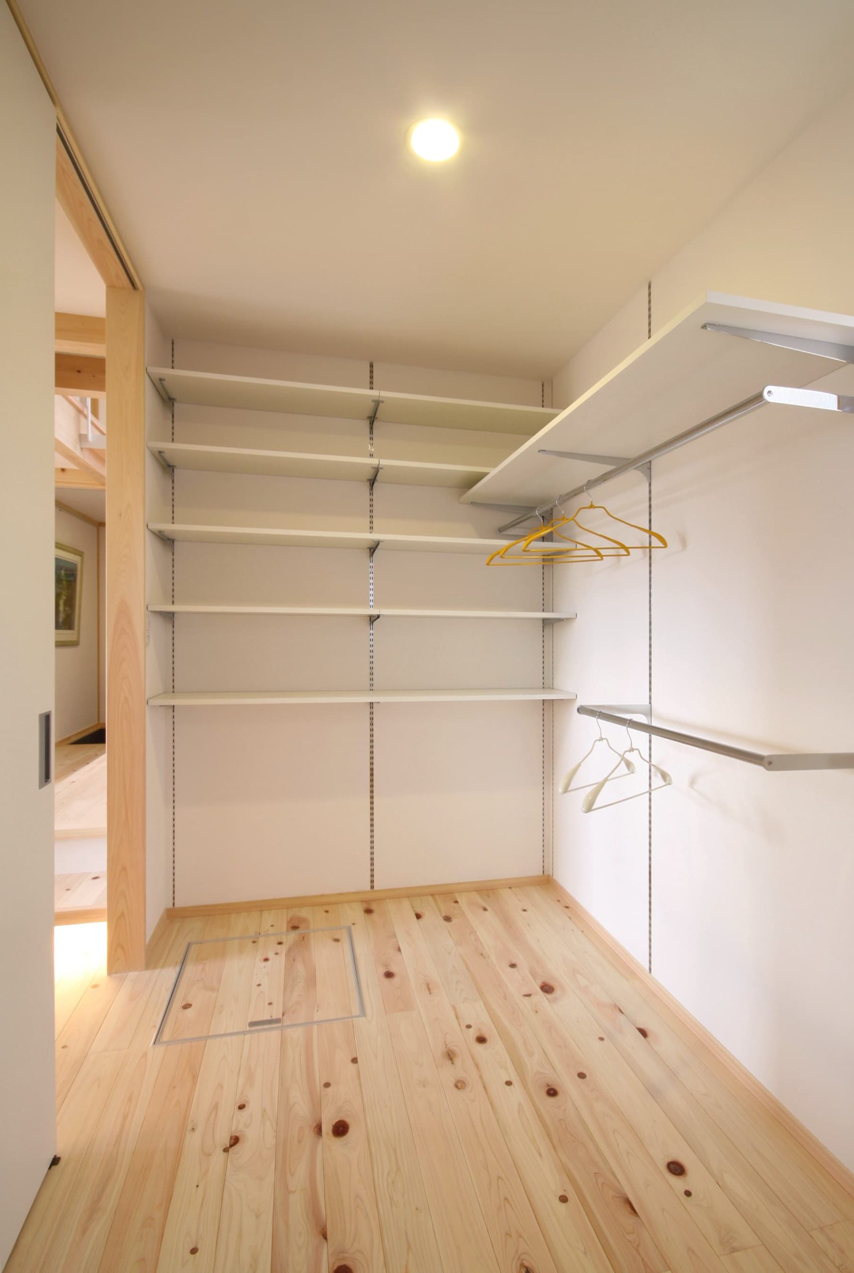 帰宅して服や荷物をしまったらそのままお風呂へ直行できる家族みんなで使える大容量収納です。