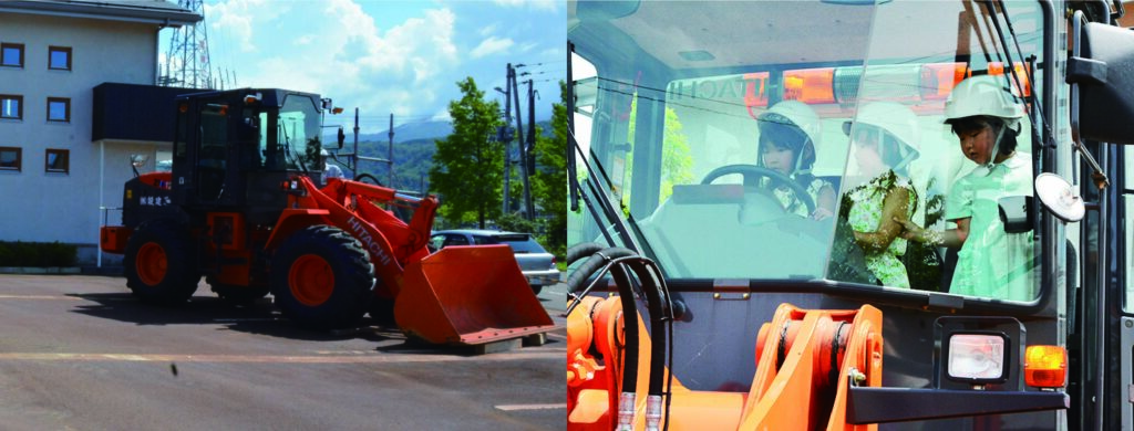 工事現場や冬の除雪に大活躍のホイールローダーに乗って記念撮影ができます!