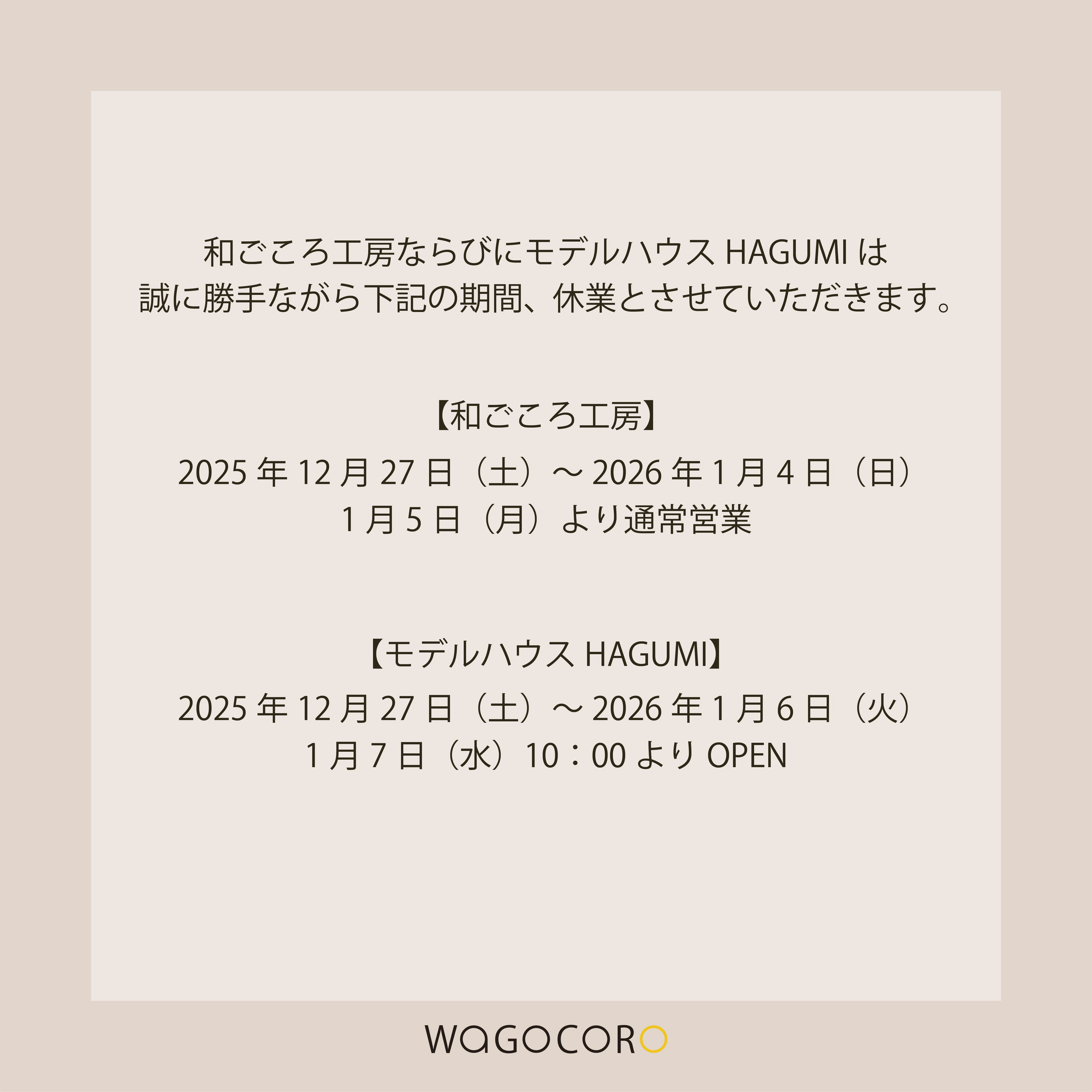 本年も和ごころ工房ならびにモデルハウスHAGUMIをご利用いただきありがとうございました。