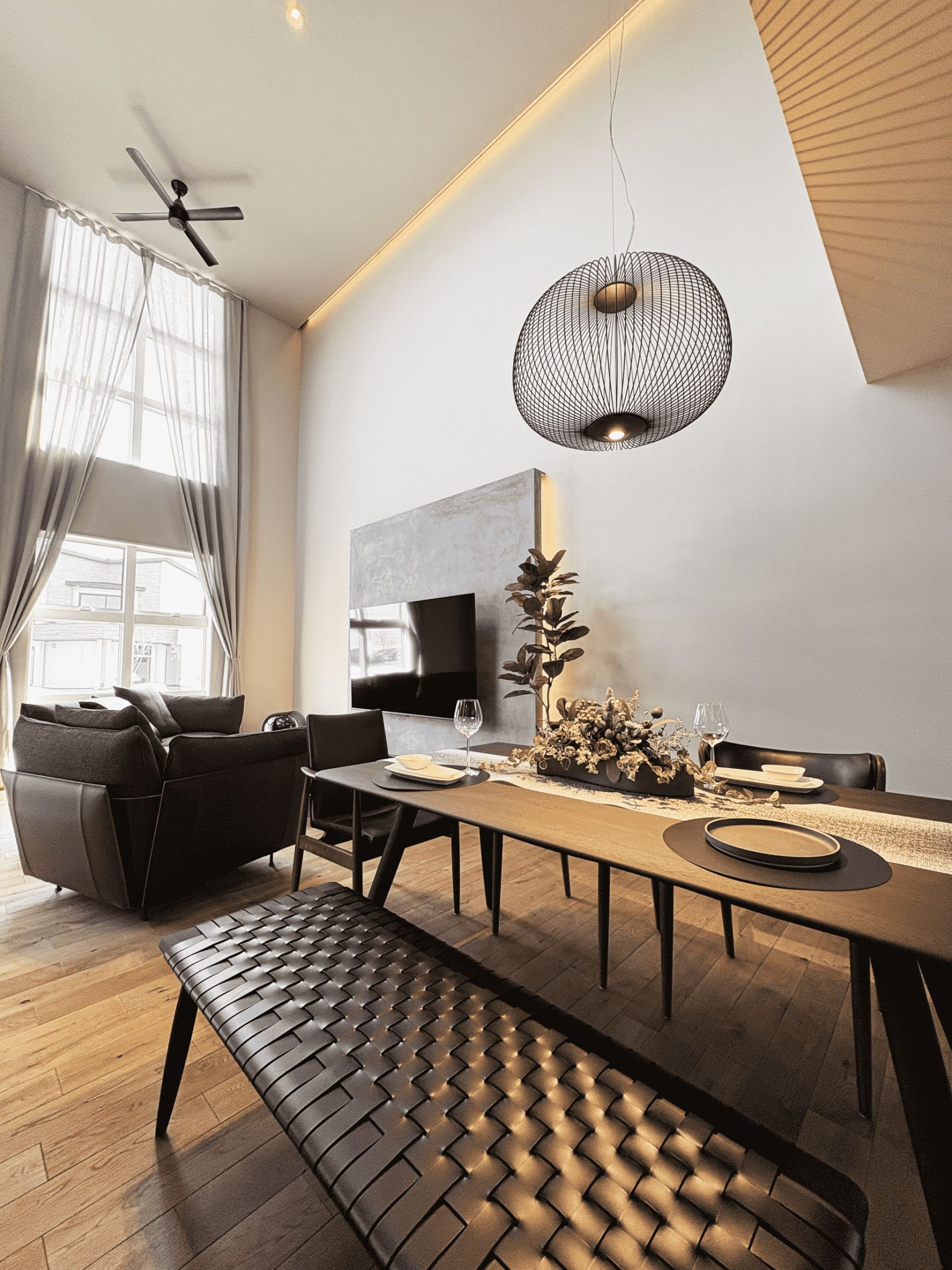 南に面面したリビングは外の光をたっぷり採り込み、明るく心地よく過ごせます。リビングに設置されたこだわりの家具の手触りや座りごこち、インテリアもお楽しみいただけます。