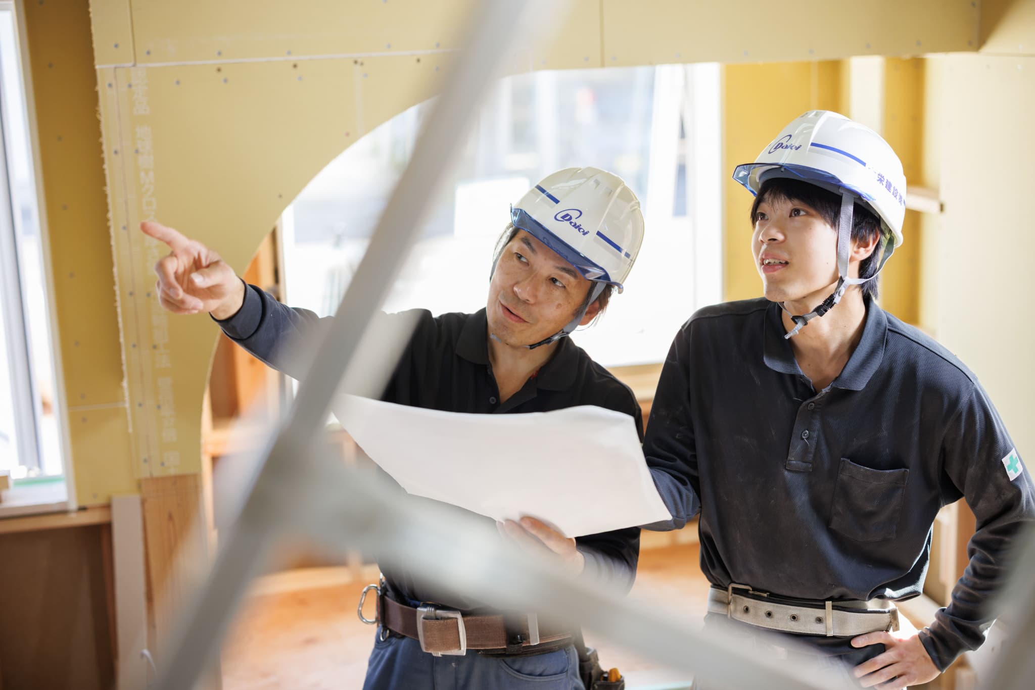また、自社大工の育成にも力を入れ、ベテラン職人から次の世代へと技術を受け継ぎながら、皆様に安心して暮らしていただける住まいをお届けします。