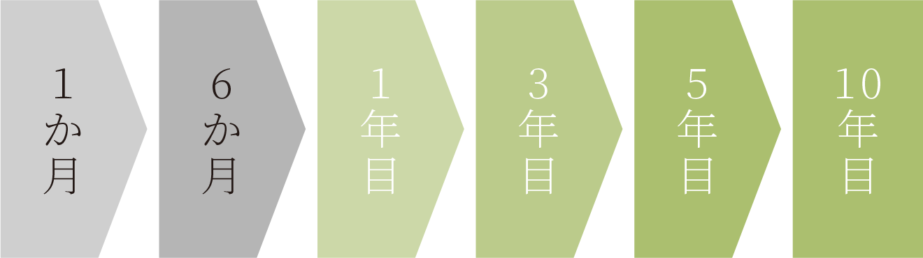 計6回の定期点検は最低限実施いたします。もちろんお困りごとに合わせて、お気軽にご相談いただけるアフター体制を整えております。